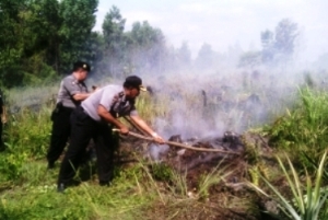 Pastikan Api Padam, Kapolresta Pekanbaru Ikut Lakukan Pemadaman