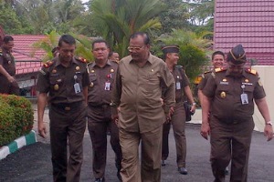 Dalam menjalani proses penyidikan kasus dugaan korupsi dana APBD Inhu, senilai Rp 2,7 miliar, Raja -