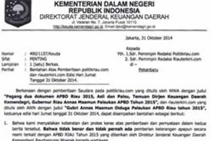 Dirjen Keuangan Daerah Kemendagri Bantah Pemberita_okean Pemalsuan APBD Riau 2015