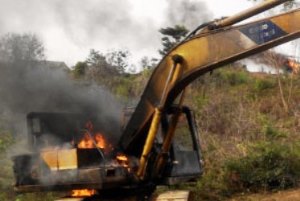 Selain membakar kendaraan berat tersebut, massa juga mengejar supir dan teknisi kendaraan tersebut -