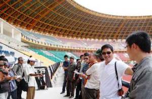 Menpora Andi Malarangen meninjau pengerjaan veneu PON di Riau 2012. Kesimpulannya, ada 7 veneu -