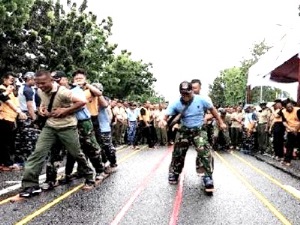 Okeline, Pekanbaru - TNI dan Polri gelar olahraga bersama di Pekanbaru menunjukkan wujud -