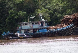 Pelalawan (KR) - Dua unit ponton syarat bermuatan kayu untuk bahan baku PT RAPP disandera oleh