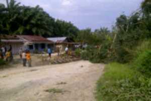 Pelalawan - Angin kencang disertai petir saat terjadi hujan lebat yang melanda Desa Mekar Jaya, -
