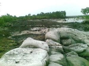 Tanggul Jebol, Sawah Warga Bengkalis Digenangi Air Laut