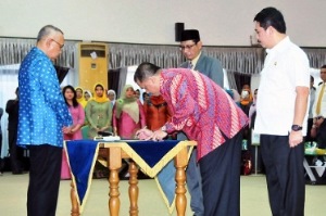 Penyerahan memori tugas oleh camat yang lama kepada Plt Sekda dan diteruskan kepada camat baru. -