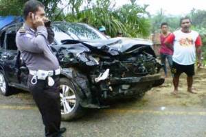 Nisan Extrail Terbalik Menghantam Datsun dan Sepeda Motor
